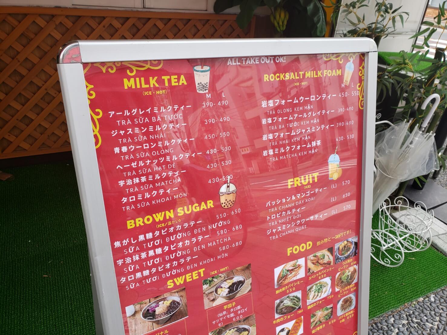 タピオカミルクティーの他にベトナム料理もあるようです。