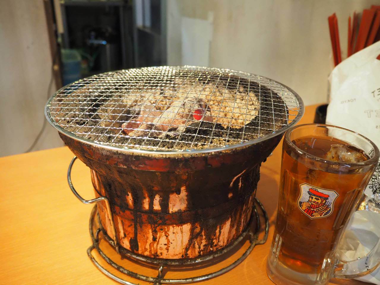 注文するとすぐに七輪と麦茶が運ばれてきました。