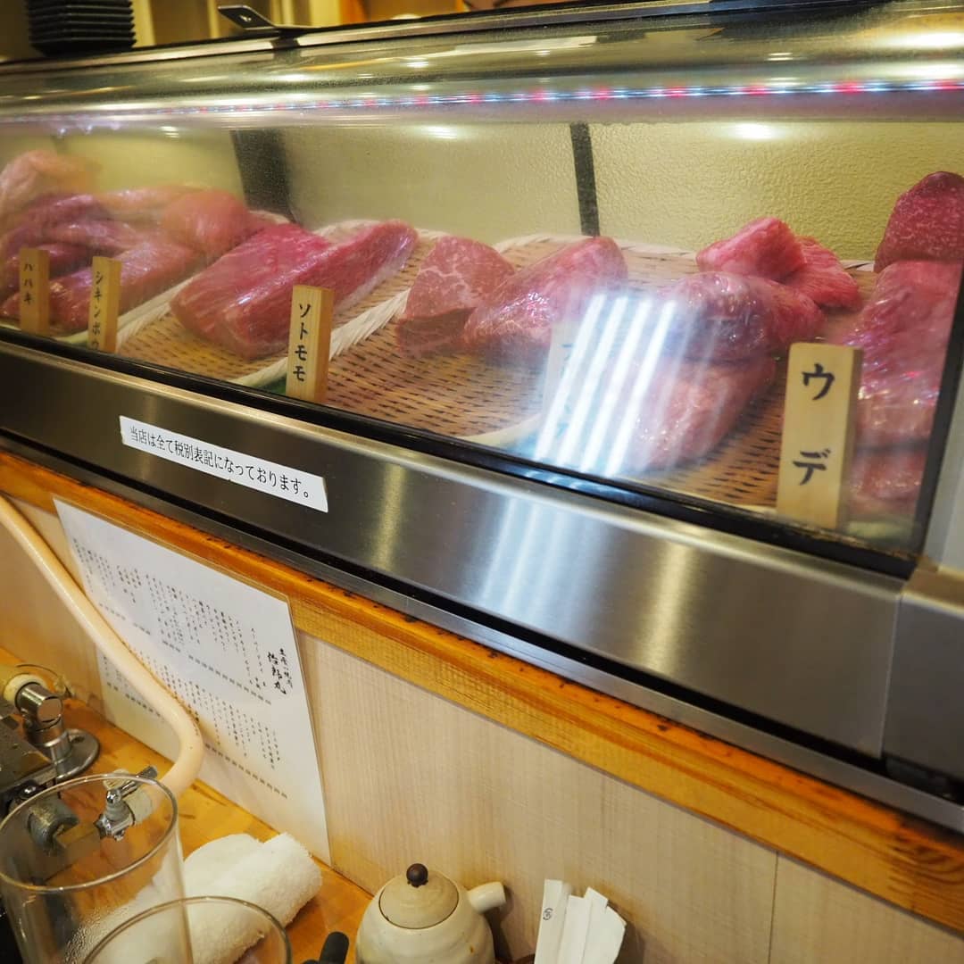 カウンターには肉の塊が並んであります。