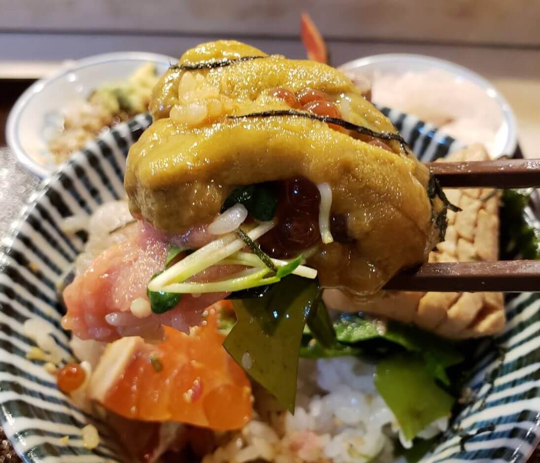 →「上海鮮丼、魚汁、雲丹」を注文。