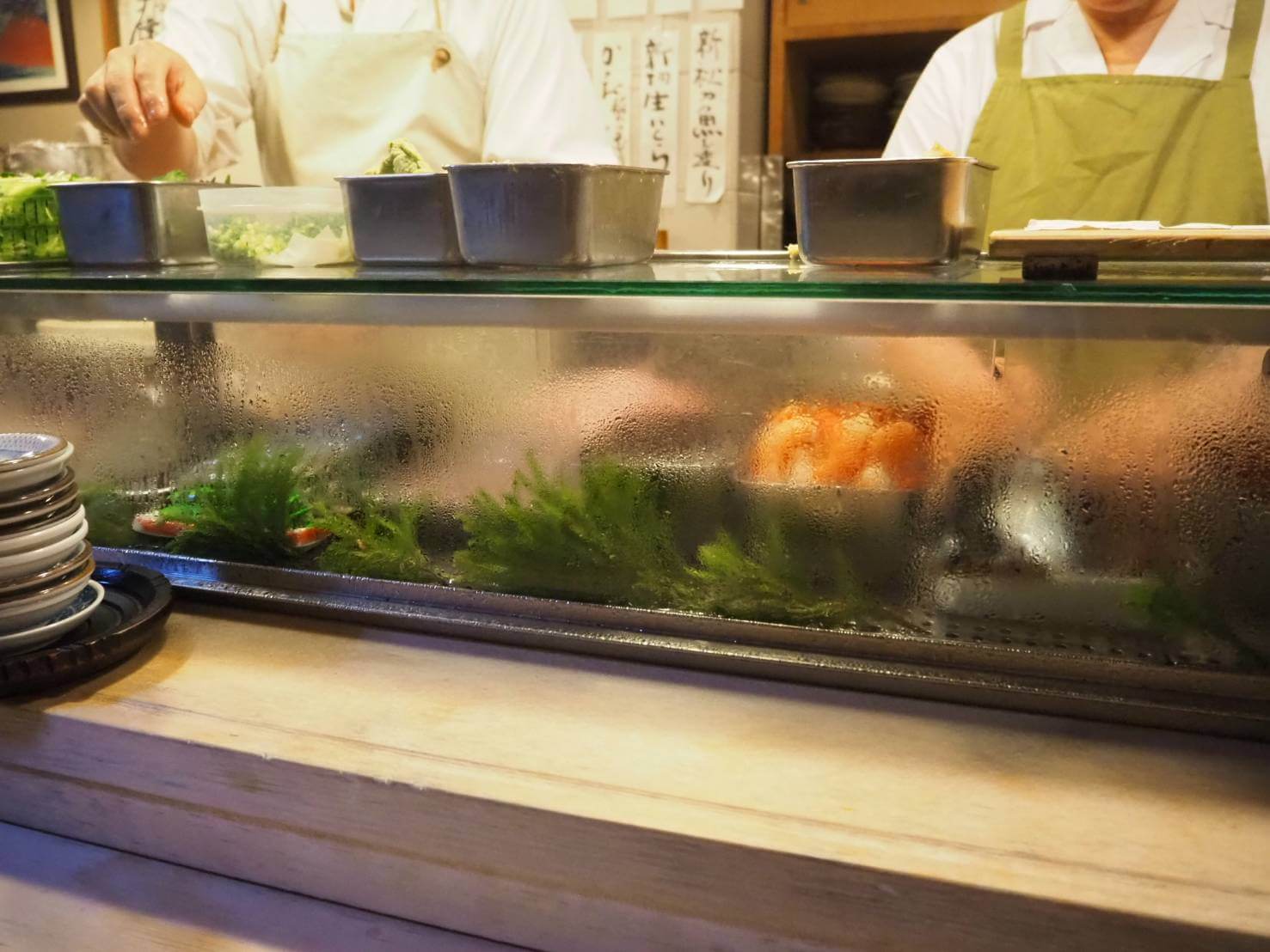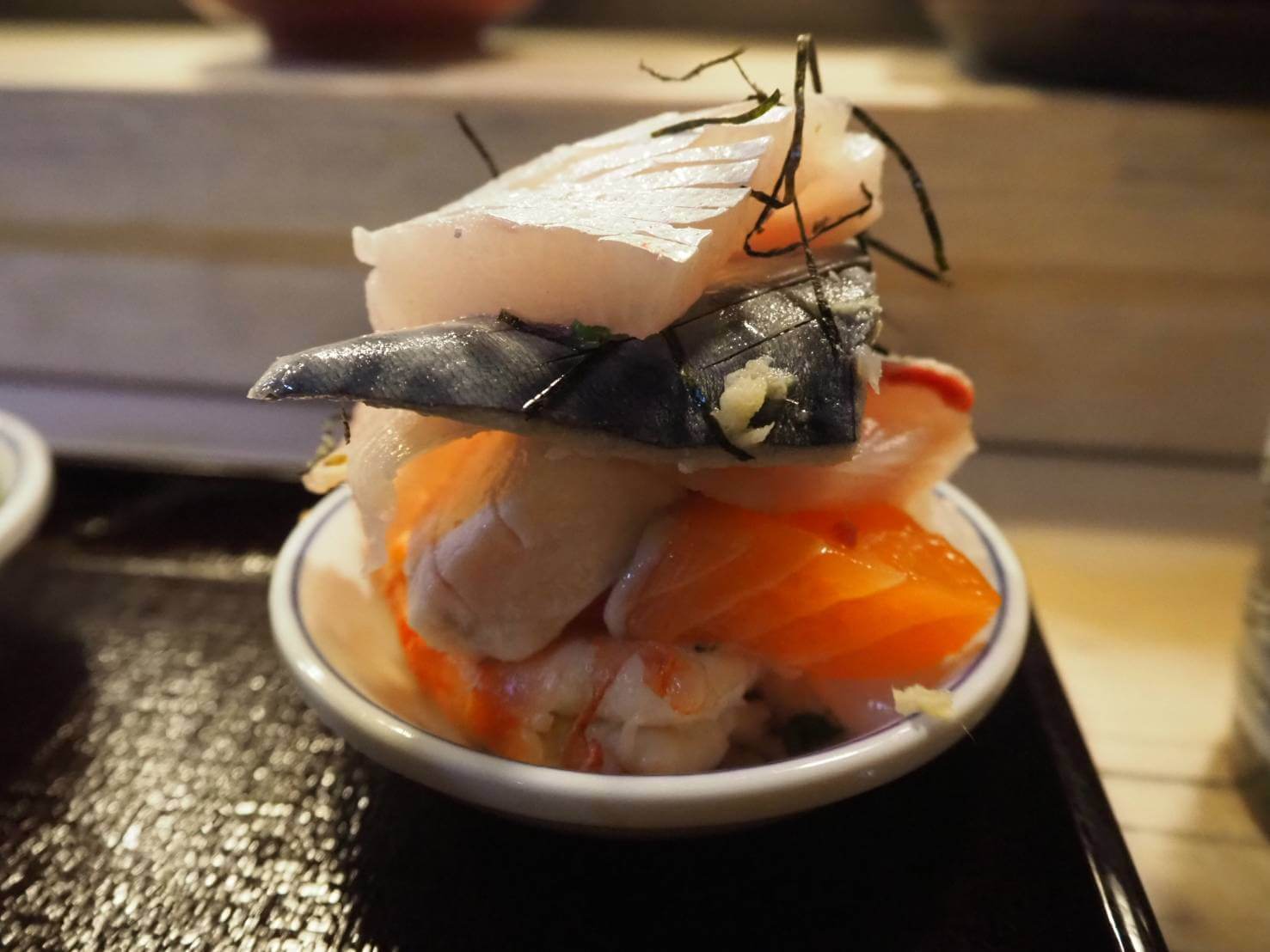 海老、サーモン、カツオ、ホタテ、生シラス、マグロ、鱧、イクラ、ブリ、タコ、鯛等が入ってるようです。