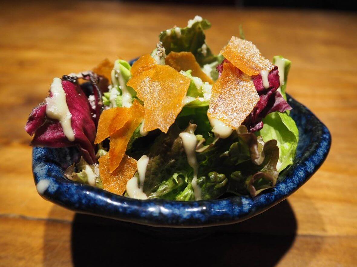 お通しは、河北町の野菜のシーザーサラダ。