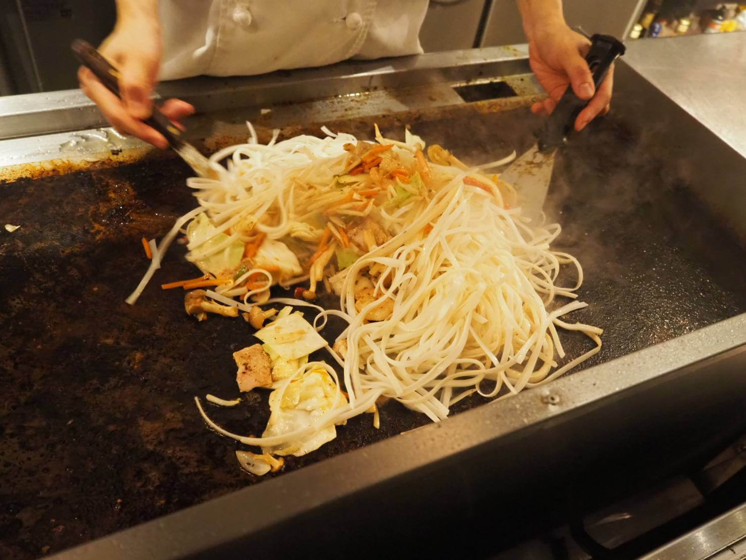 目の前でよく分からない料理を炒めています♪
