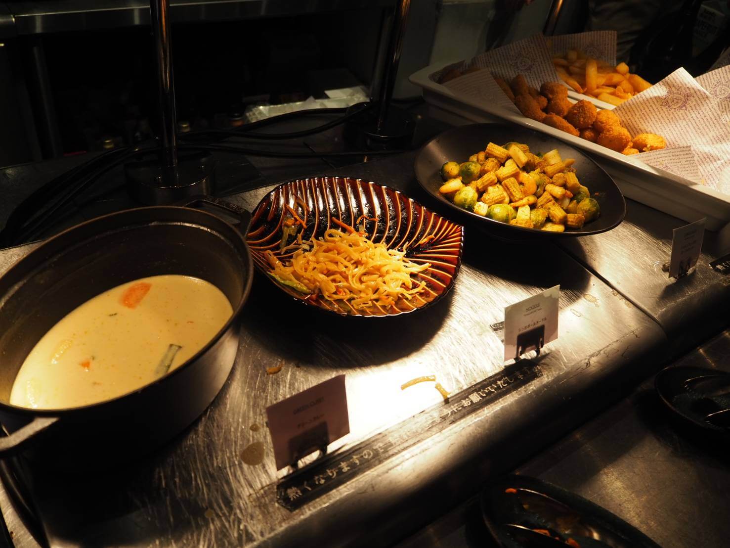 ビュッフェコーナーには沢山の料理が並べてあります。