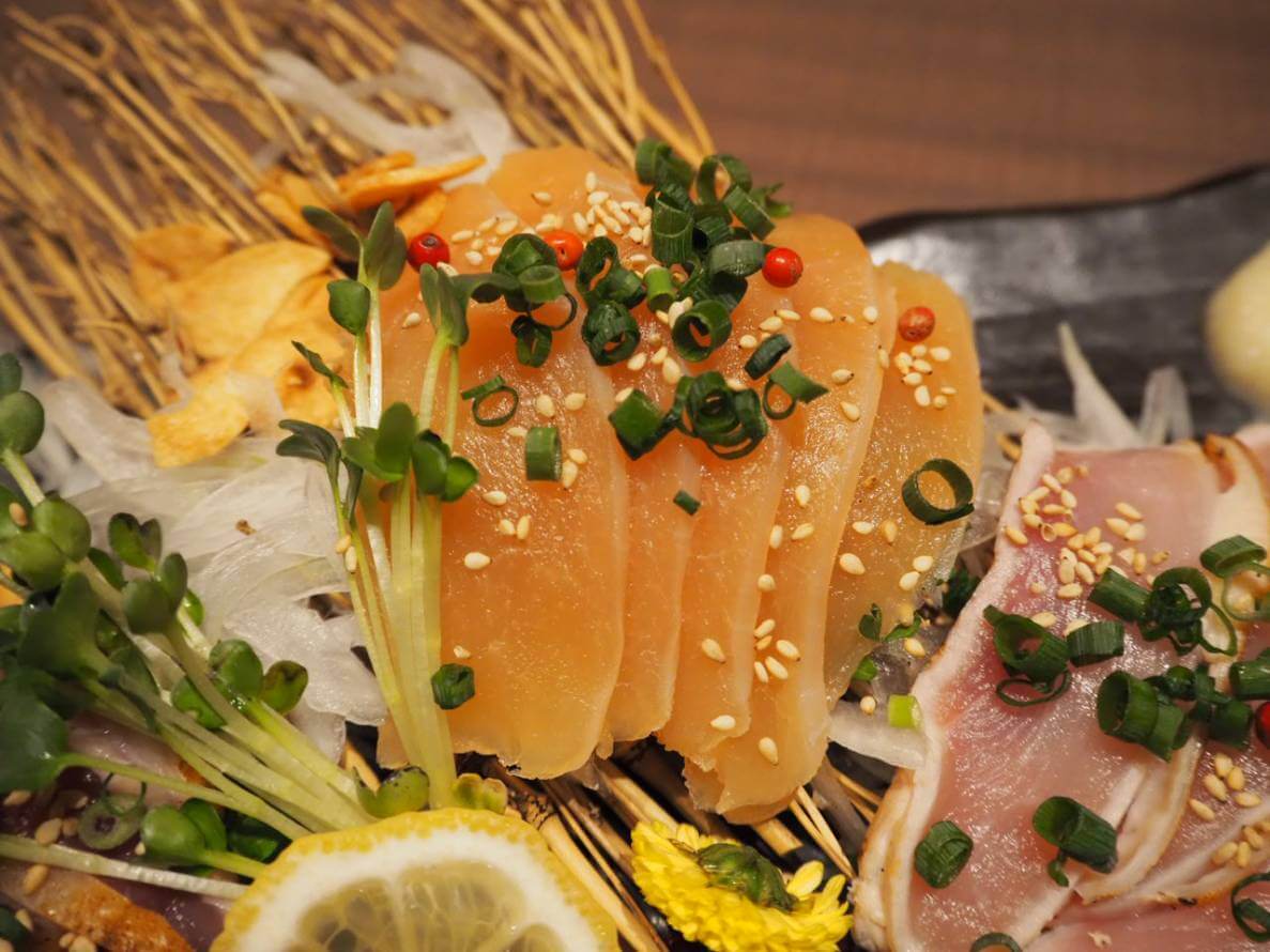 「たたき 3種食べ比べ」、「生親子丼」をオーダー。