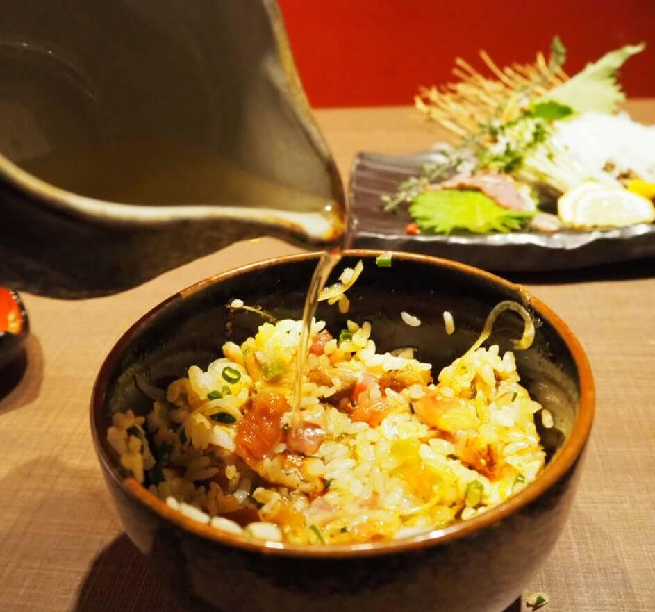 お通しで出てきた、「鶏ガラスープ」を掛けて茶漬け風にしていただきます!