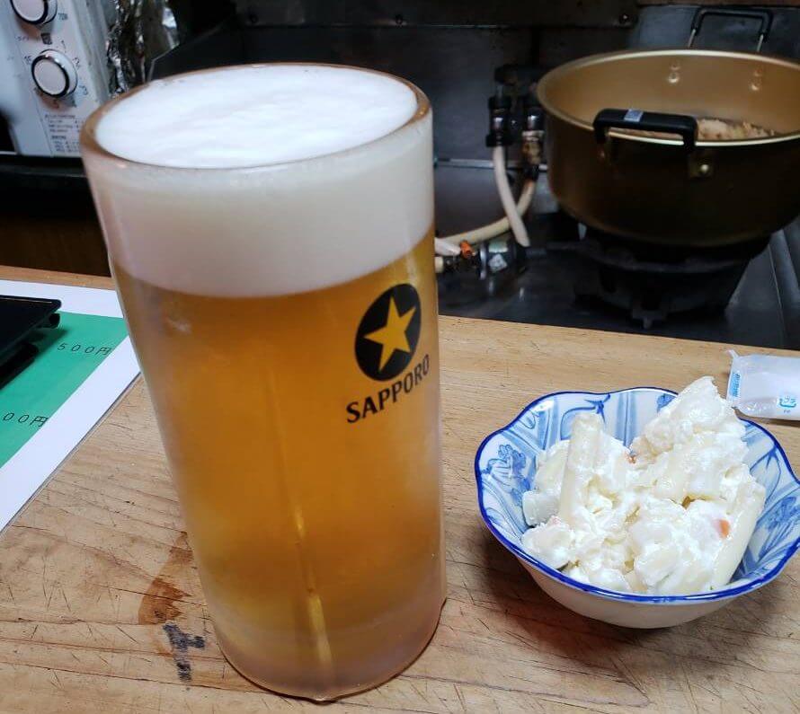 突き出しのマカロニサラダを食べながら、焼鳥が出来上がるのを待ちます。