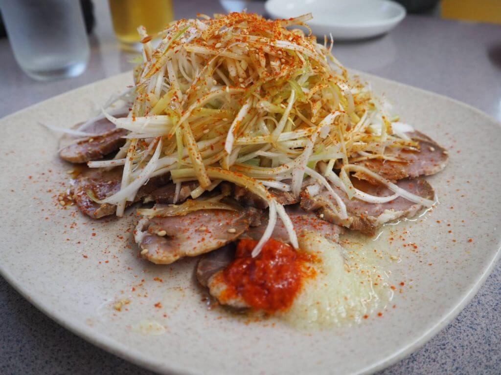 チャーシューの上に山盛りのネギ。
