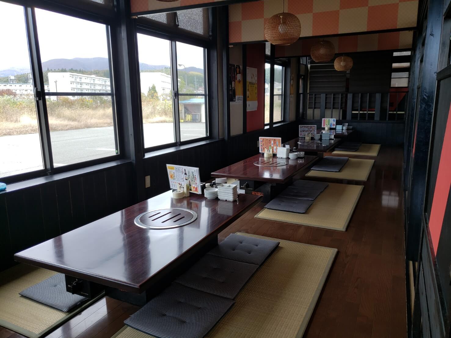 焼肉屋のスペースは、テーブル席と座敷に分かれおり、キャパは40~50人くらいでしょうか。