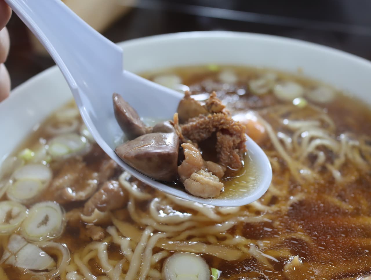 「とりもつラーメン」を提供しているお店は、新庄・最上地域内で約10店ほどあり、店によって麺やスープ、鳥モツ味付けに違いがあります。「梅屋」さんの鳥モツラーメンはどんな味なんでしょうか?