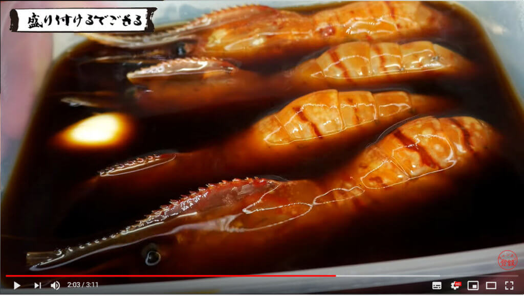 牡丹海老が手に入らない場合は甘海老や赤海老でも代用可能なのですが、牡丹海老よりも個体が小さい海老を使う場合は漬け時間10~20分くらいで食べるのがちょうど良いと思います。