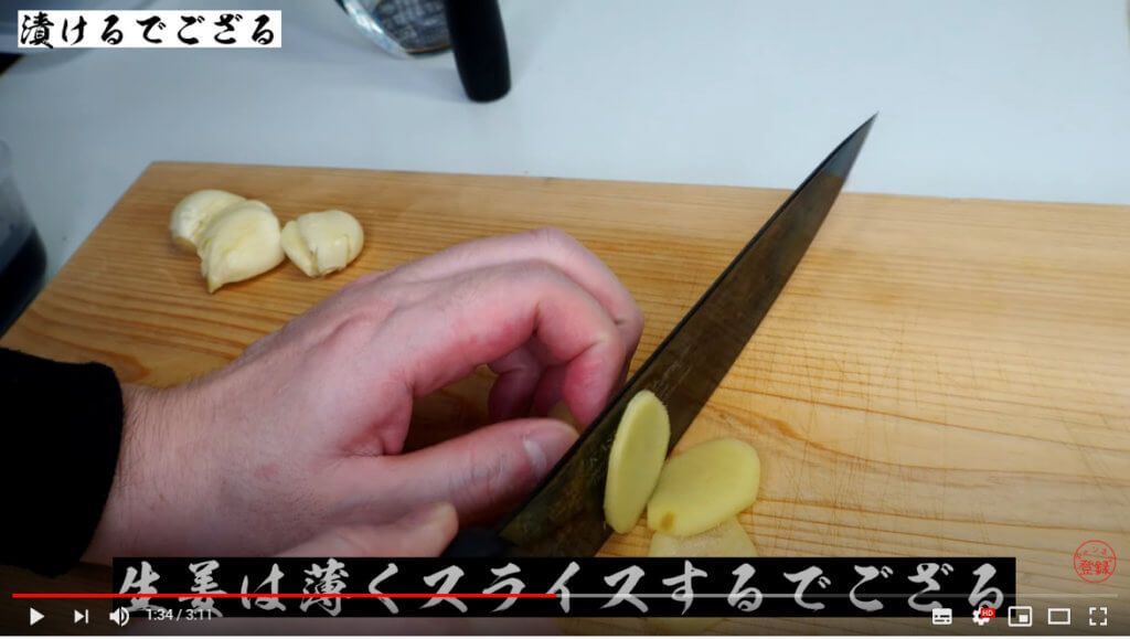 生姜とニンニクも調味液に投入します。