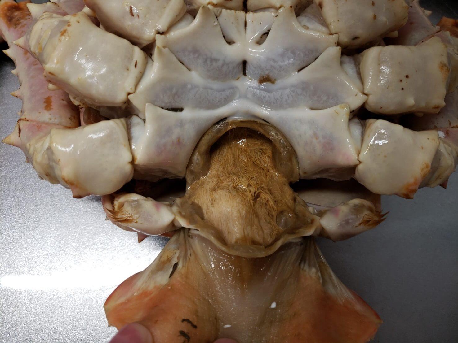 甲羅の腹側のふんどし部分をめくり、そこからスプーン等でミソ(内蔵)を掻き出してください。