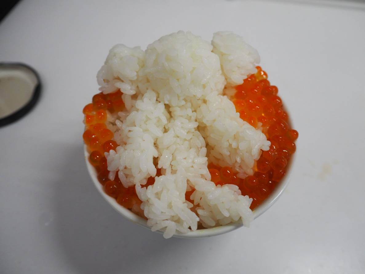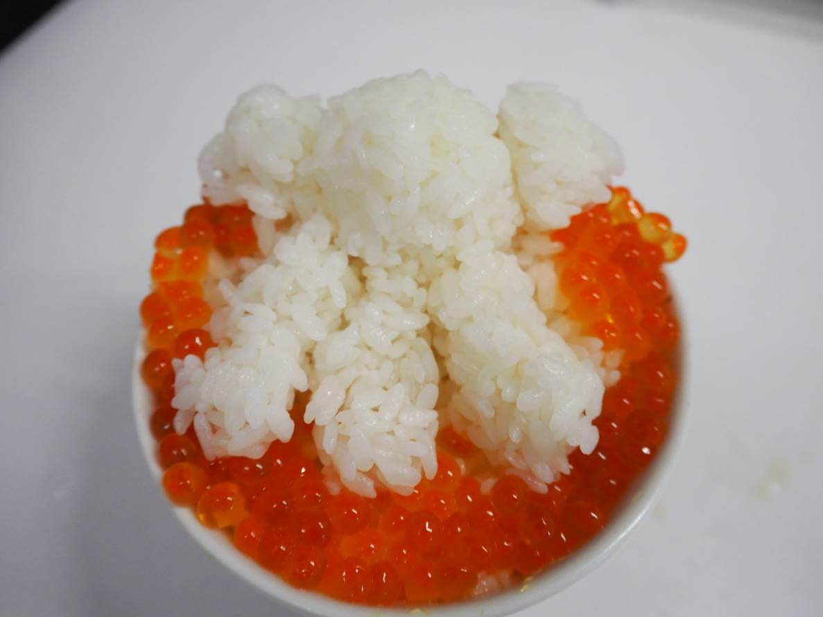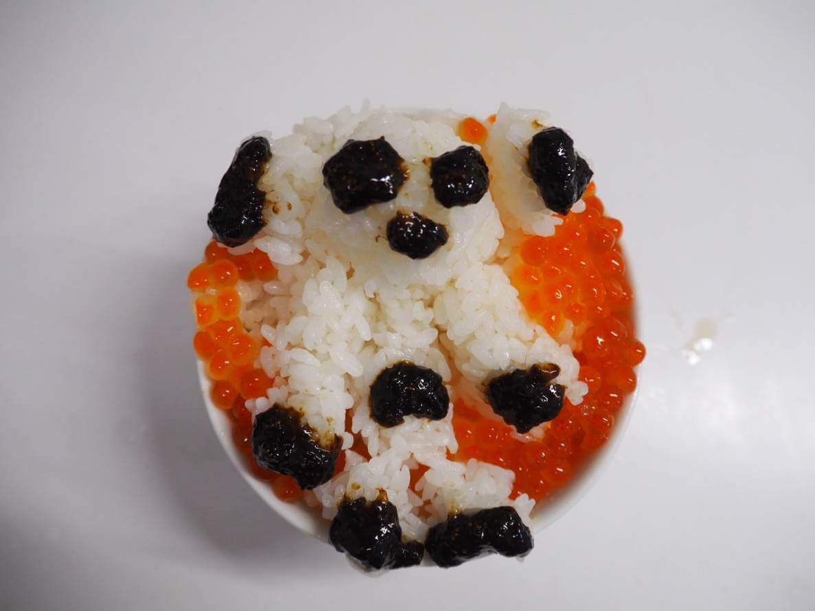 顔、胴体、耳、手足をつくり、周りにイクラを敷き詰めます♪