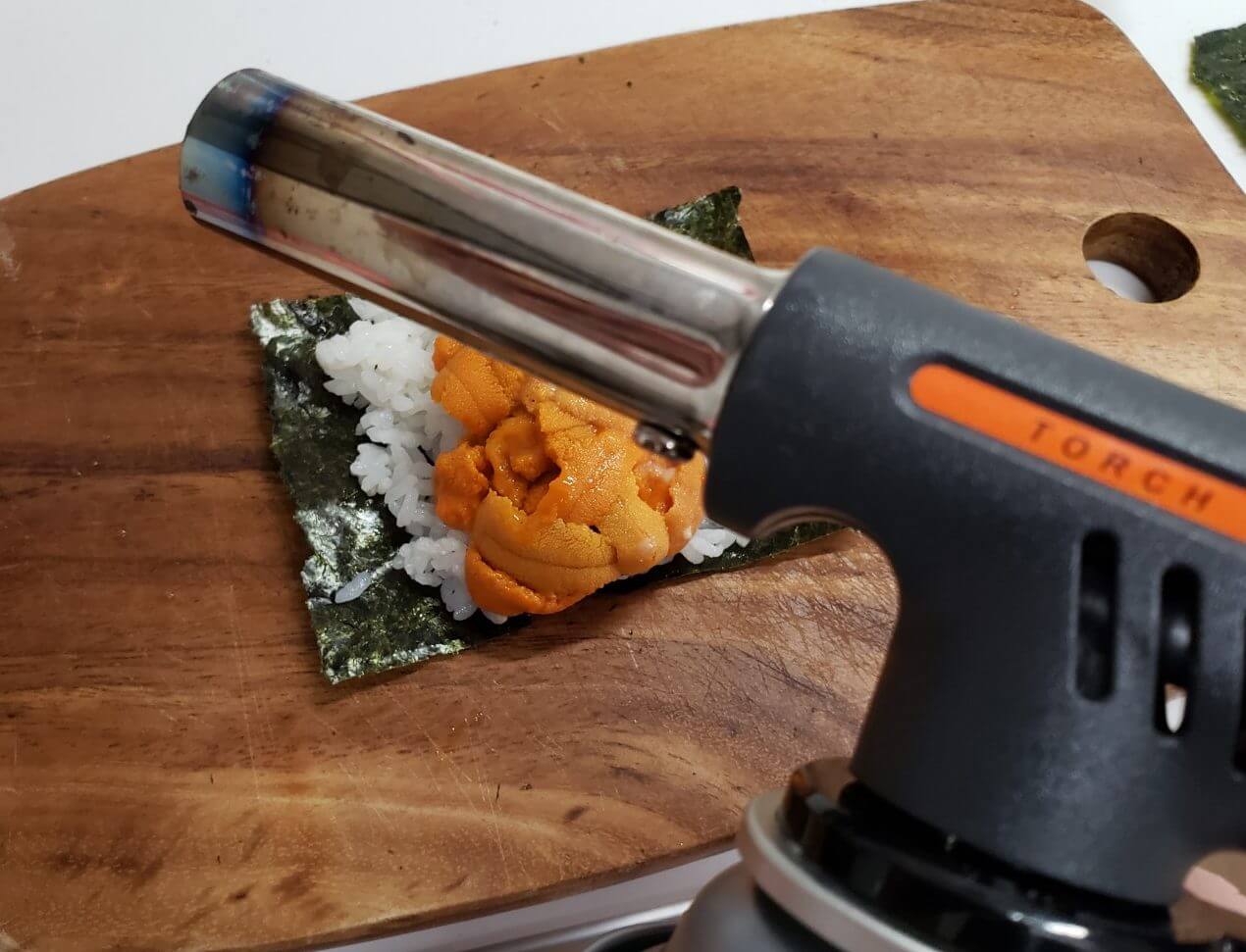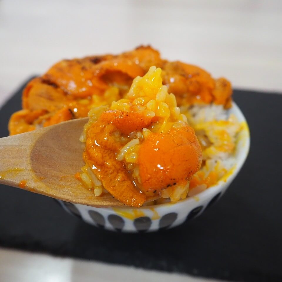 精子付きの雲丹(うに)を買ってきたので、ガスバーナーで炙って「炙り雲丹TKG丼」を作ってみました。