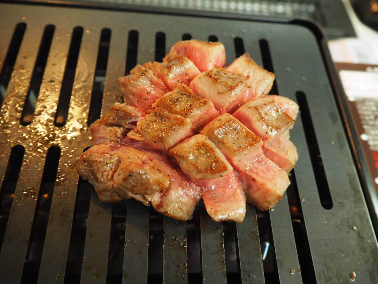 鉄板を熱して、肉を焼いてくぜ!!