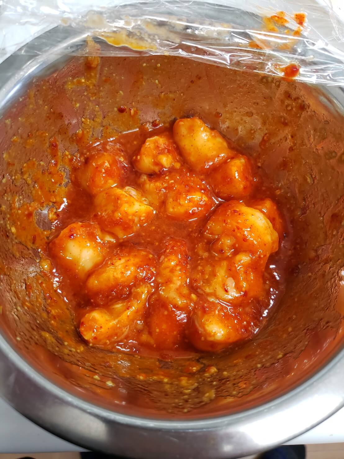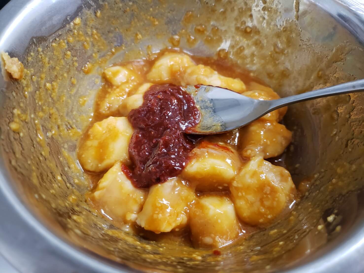 辛さが足りなかったので、「ヤンニョムケジャン」を食べたときに余ったタレを投入。
