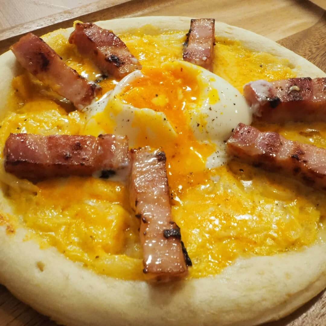 温玉カルボナーラベーコンピッツァ