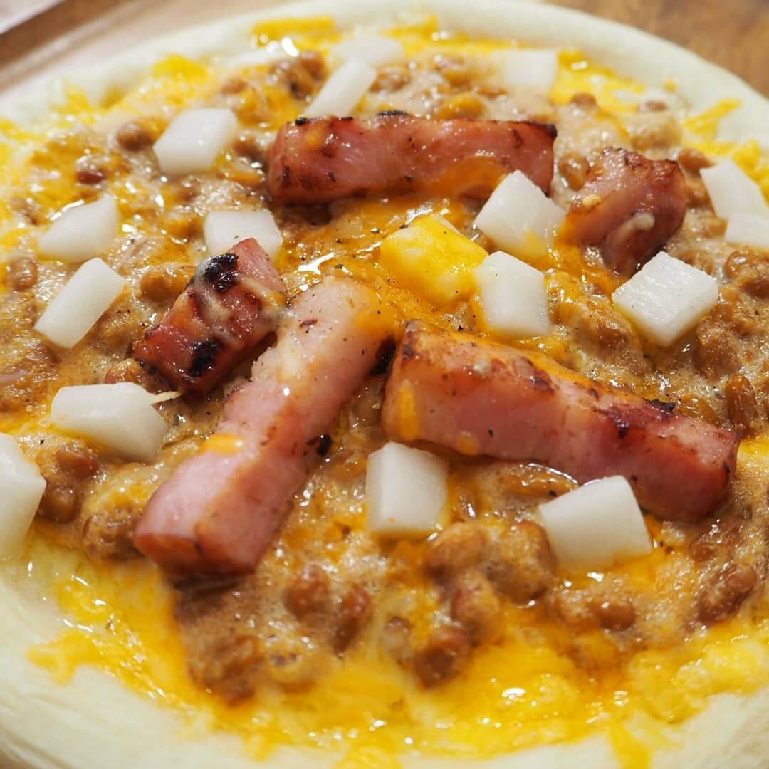 明太子納豆モチベーコンピッツァ