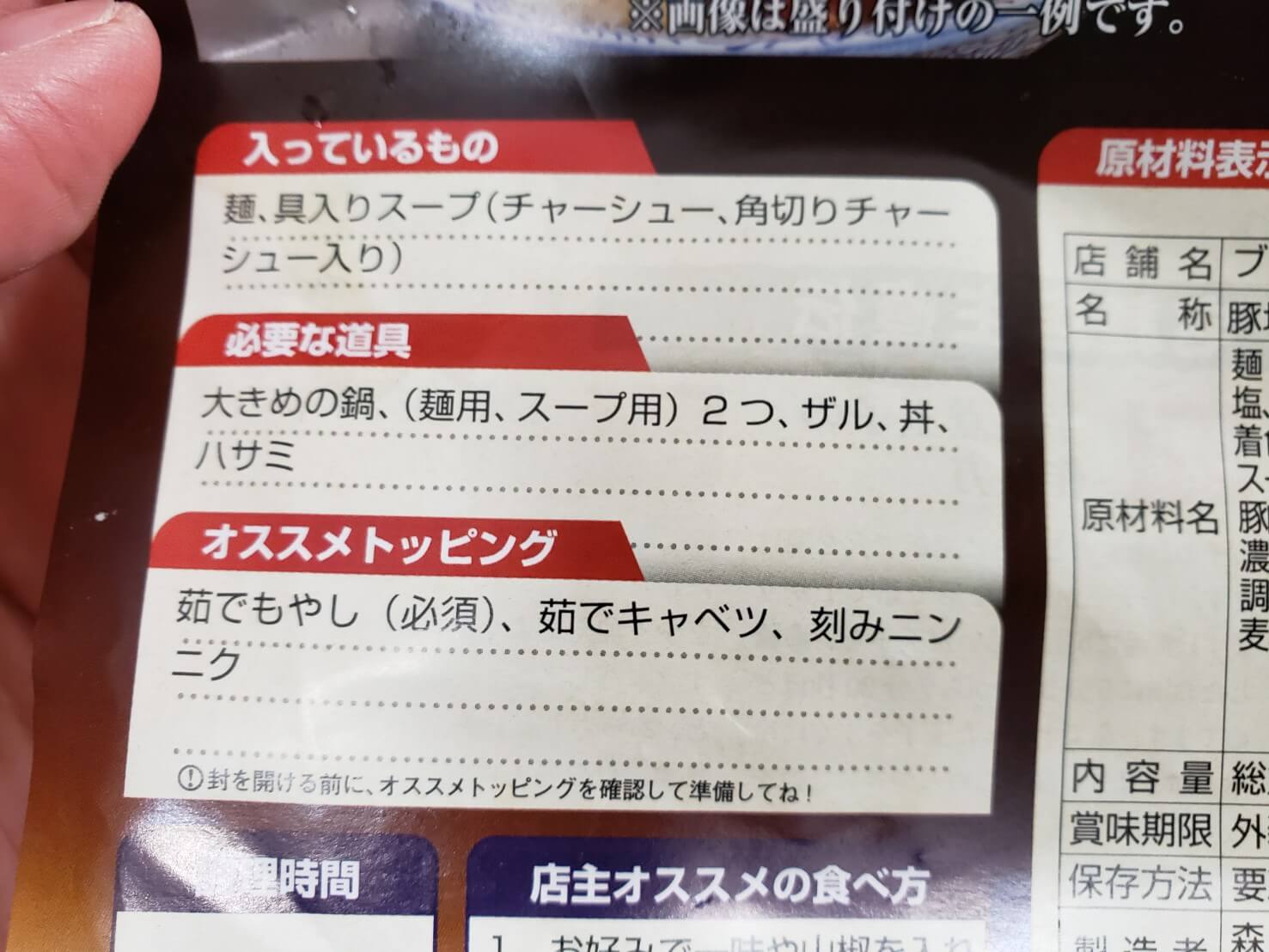 宅麺の場合、野菜等のトッピングは自分で用意する必要があります。