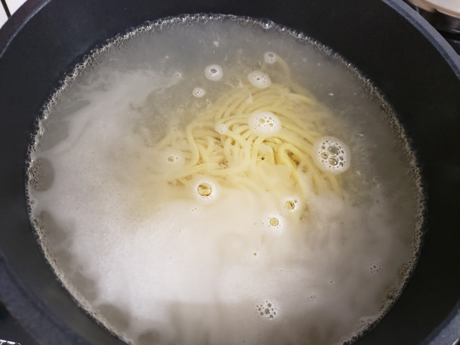 沸騰した鍋に麺を入れて5~6分ほど茹でます。