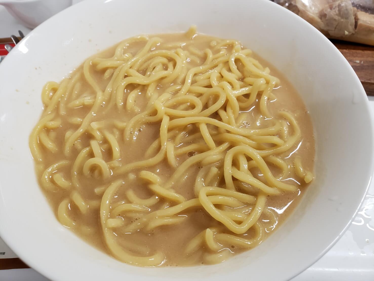 ラーメン二郎のワシワシっとした感じではなく、つるつるモチモチ麺。