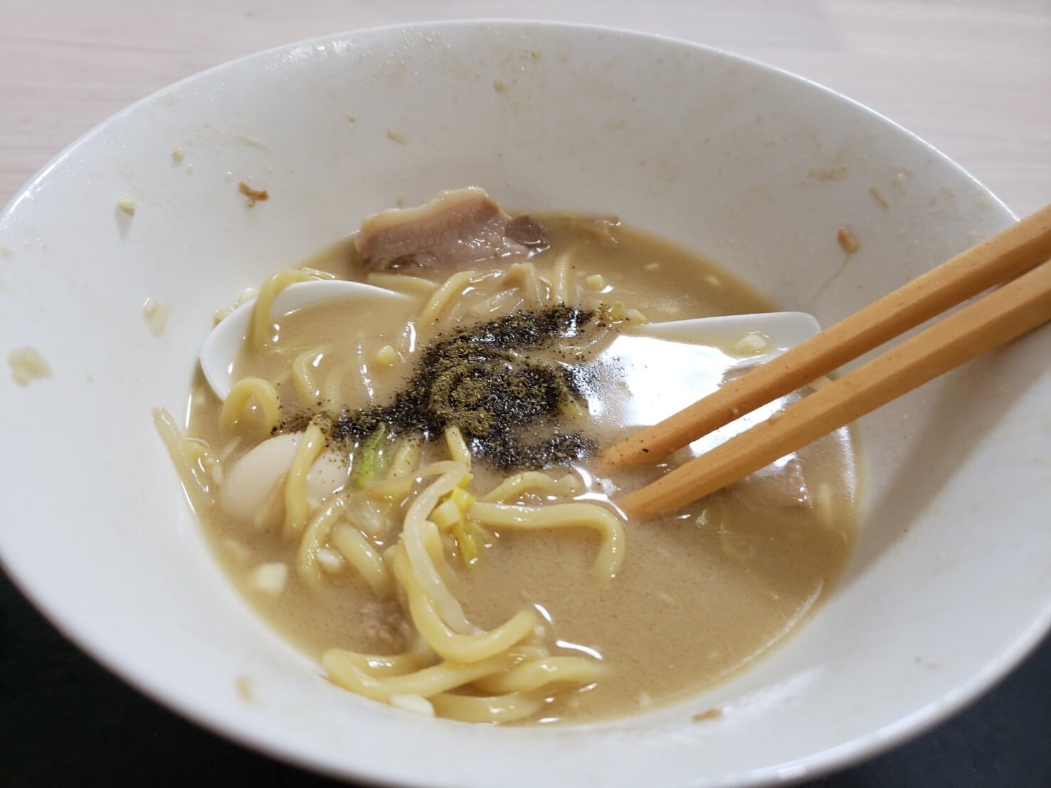 トッピングしまくった結果、スープの味はちょっと薄め。