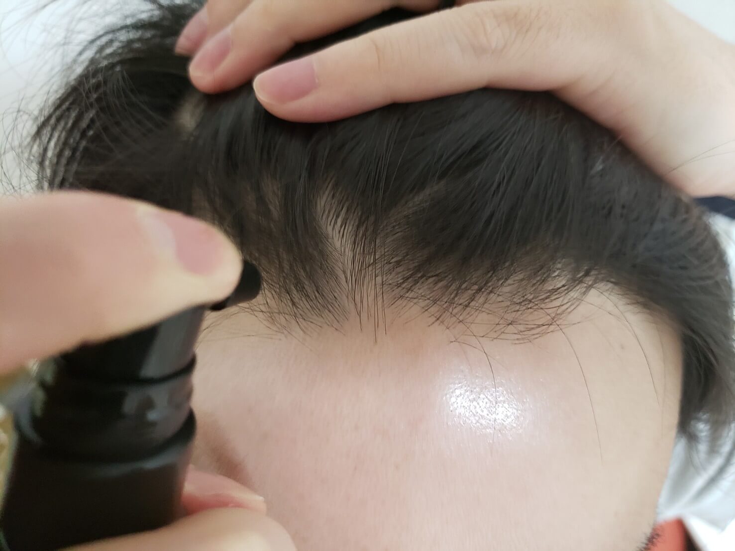 前回は、ミニカメラで撮影したものでしたが、生え際に産毛がもっさーって生えてきてるの分かりますよね?